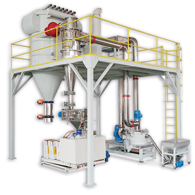 LYF系列立式磨粉機由高速空氣分級磨、旋風分離器、旋轉篩(振動篩)、超細粉集塵箱和風機構成。具有高速粉碎、氣流分級、雙旋風分離、篩粉及超細粉收集等功能,噪聲≤80DB。粒徑范圍 18um-60um可自由調節(jié),粒徑分布最佳。可用于顏料、鈣粉、碳粉、藥品以及食品的粉碎,是固體粉末的最佳粉碎設備。該系列磨粉機由國際授權機構進行了ATEX和PSR11防爆性能評估,具有優(yōu)異的防爆設計和防爆性能。